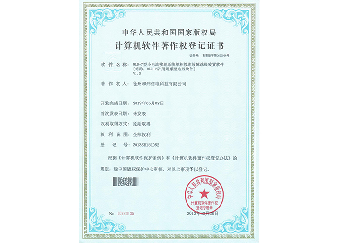 2012SR037701 DZC-2型嵌入式傳感器軟件V1.2 10軟件產(chǎn)品登記證書——和緯信電HSCC-2型排流控制器軟件V1.2 10軟件產(chǎn)品登記證書——和緯信電HSCD-2單向?qū)刂破鬈浖1.3
